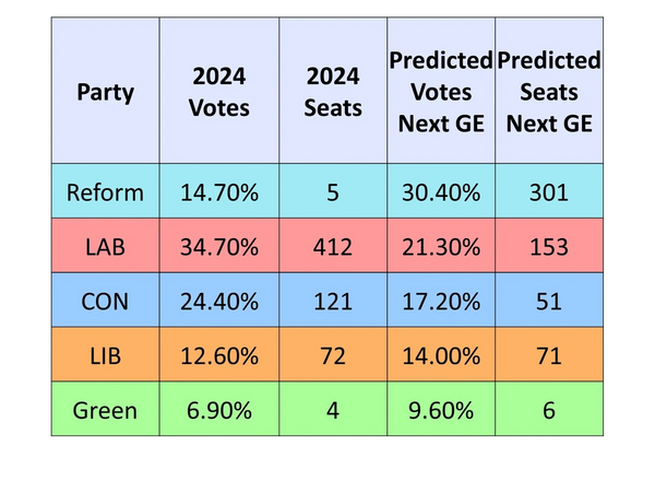 Polls have been wrong in the past, but they have never been as wrong as they would need to be to produce a different outcome. Reform is on track to take over at the next general election
